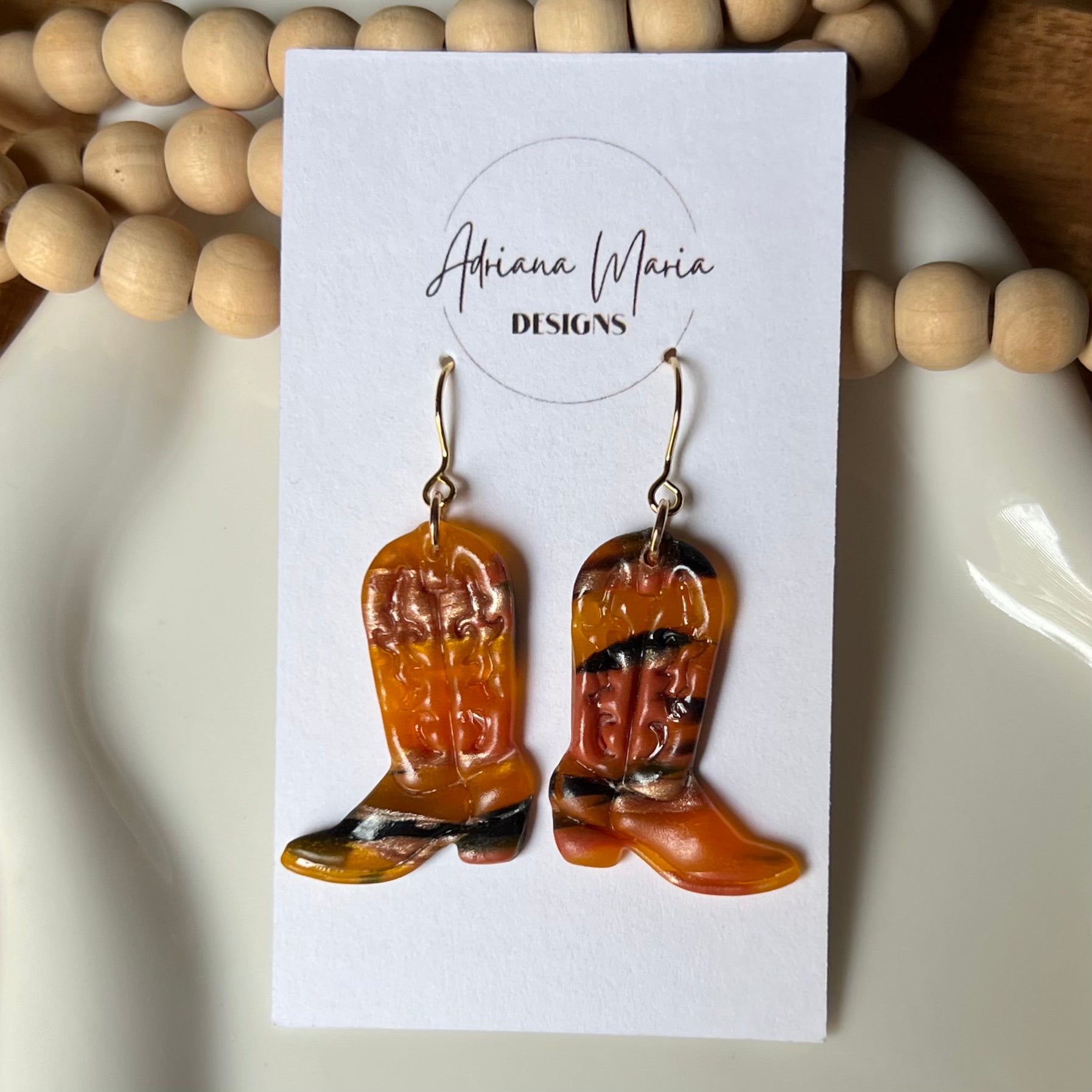 Amber Flame: Cowboy Cowgirl Boots Polymer Clay Earrings