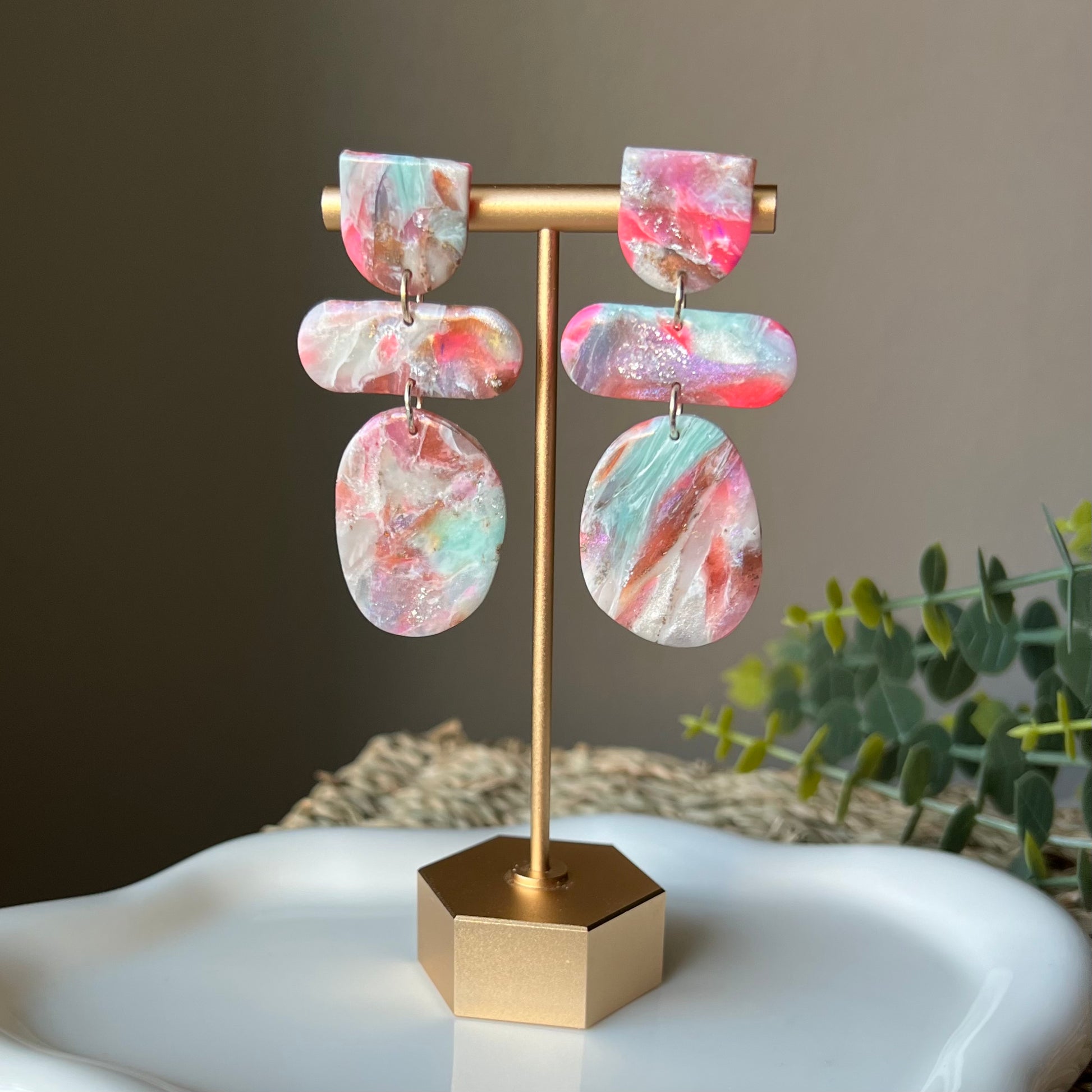 Handmade polymer clay earrings designed to be lightweight, comfortable, and easy to wear all day. Each pair is made in small batches, making every set one of a kind.