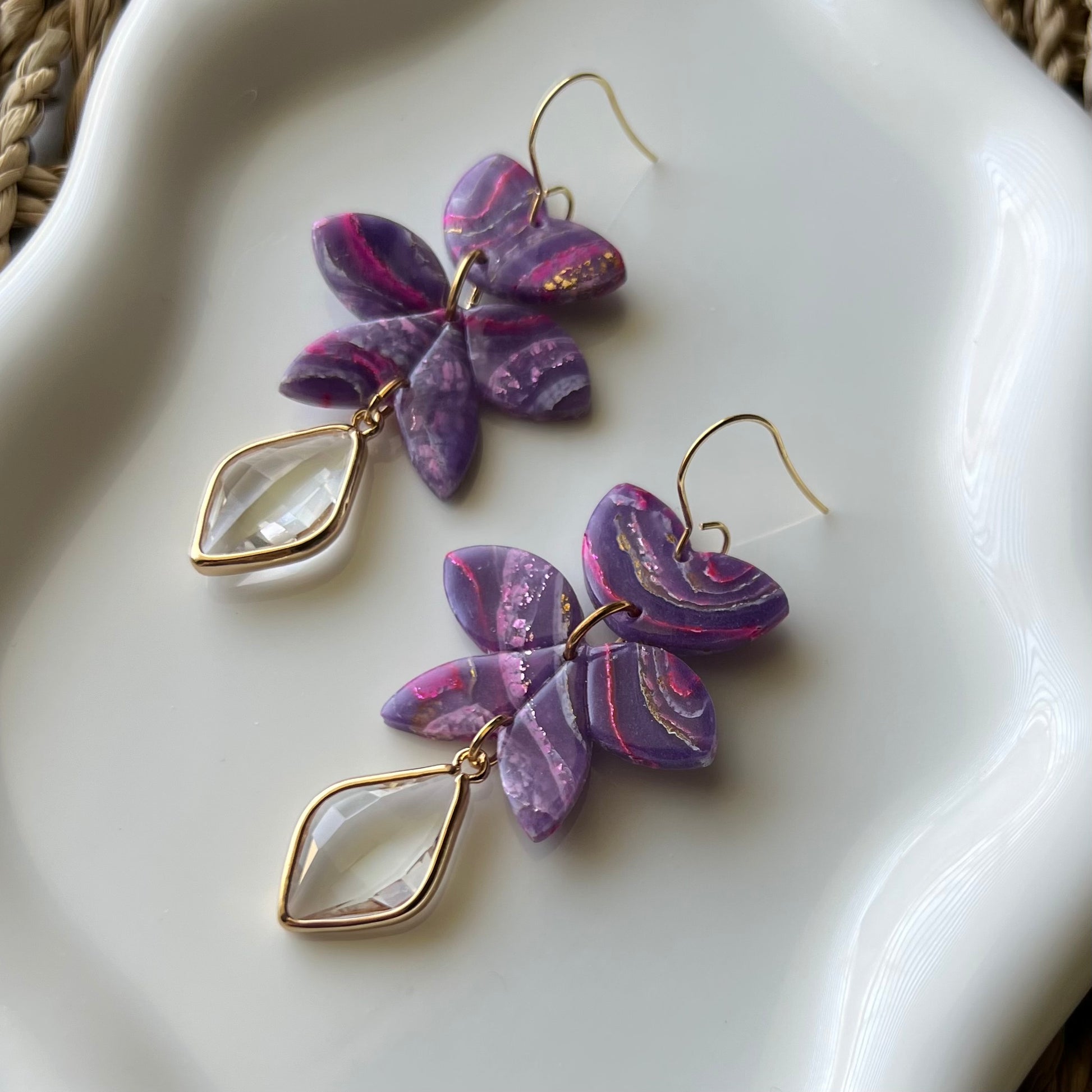 Dream In Purple: Agate Marbled Polymer Clay Statement Earrings
