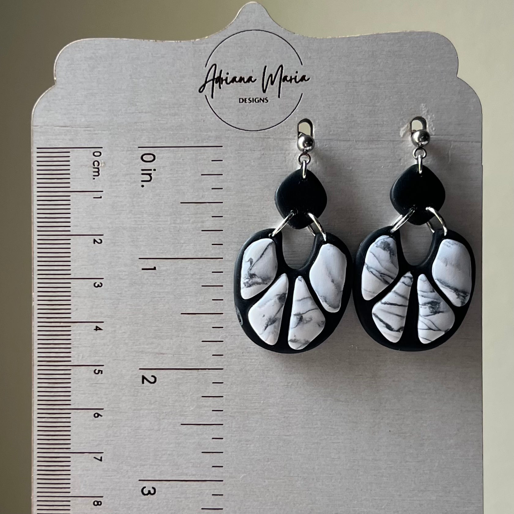 Black & White Marbled Howlite Bezel Polymer Clay Earrings