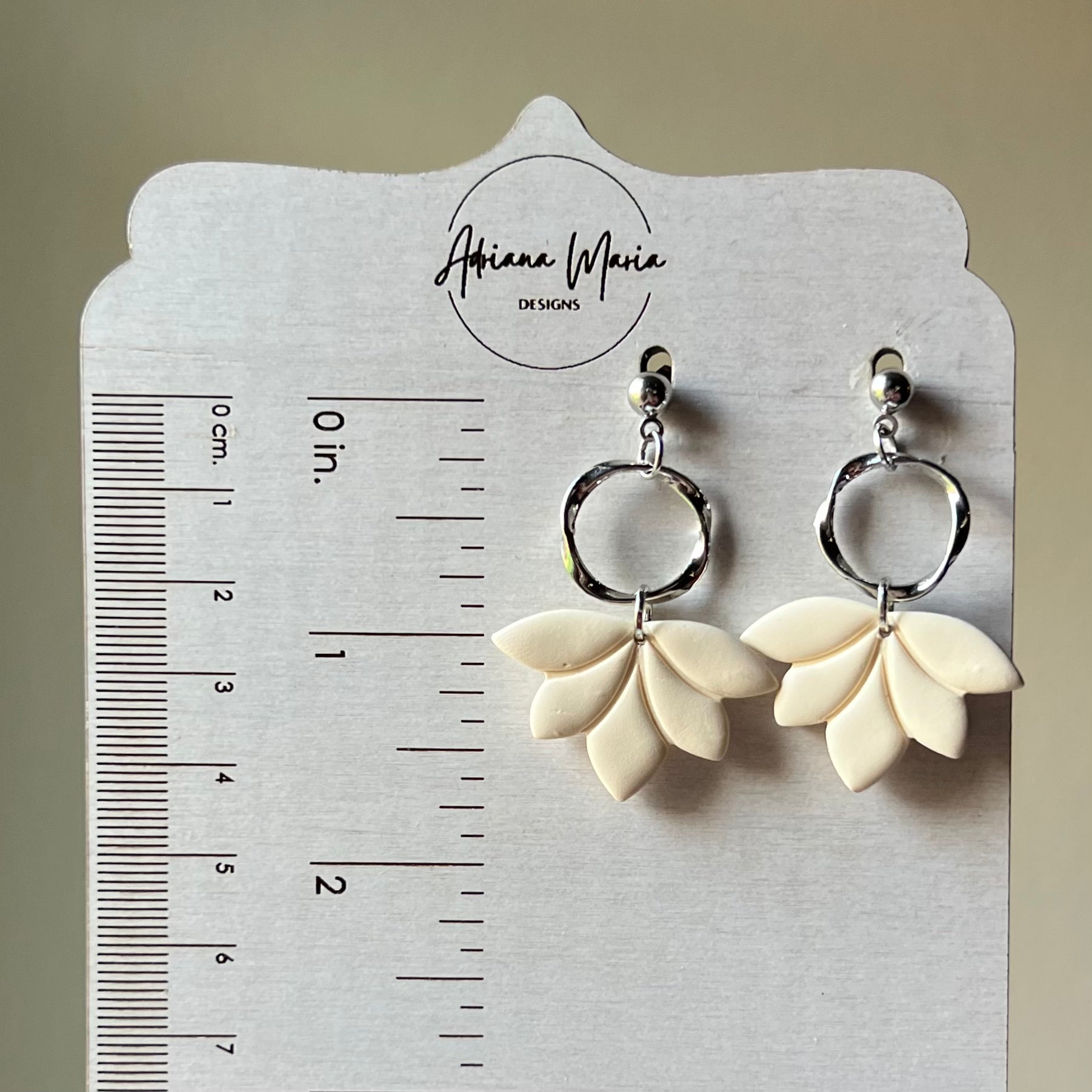 Lotus Cream Colored Polymer Clay Dangle Earrings