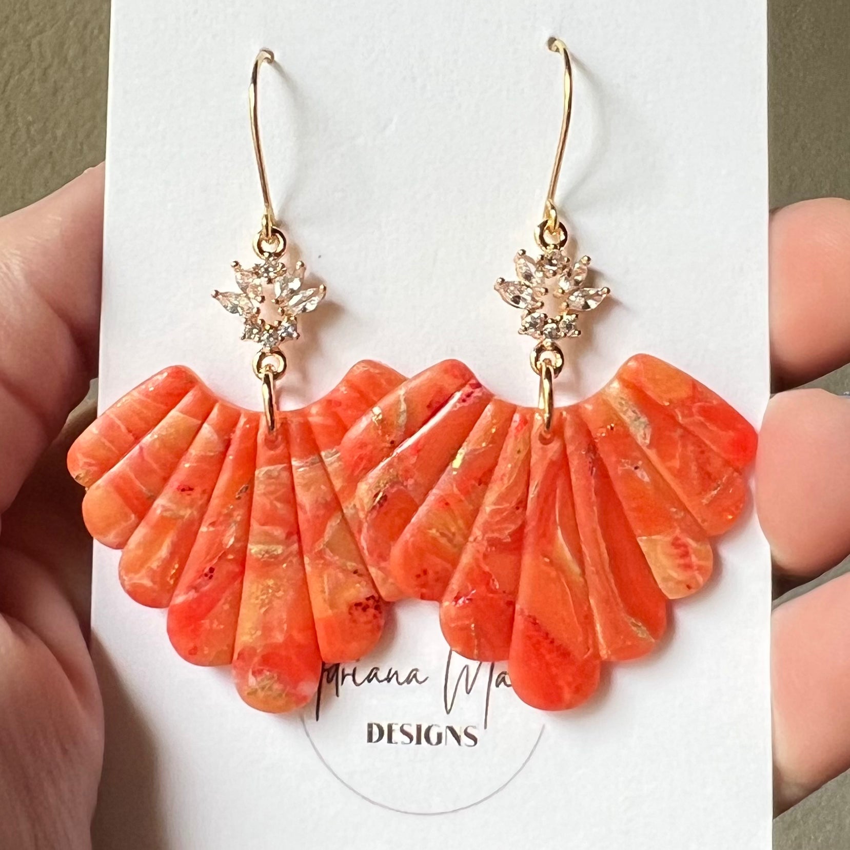 Orange Marbled Polymer Clay Statement Earrings
