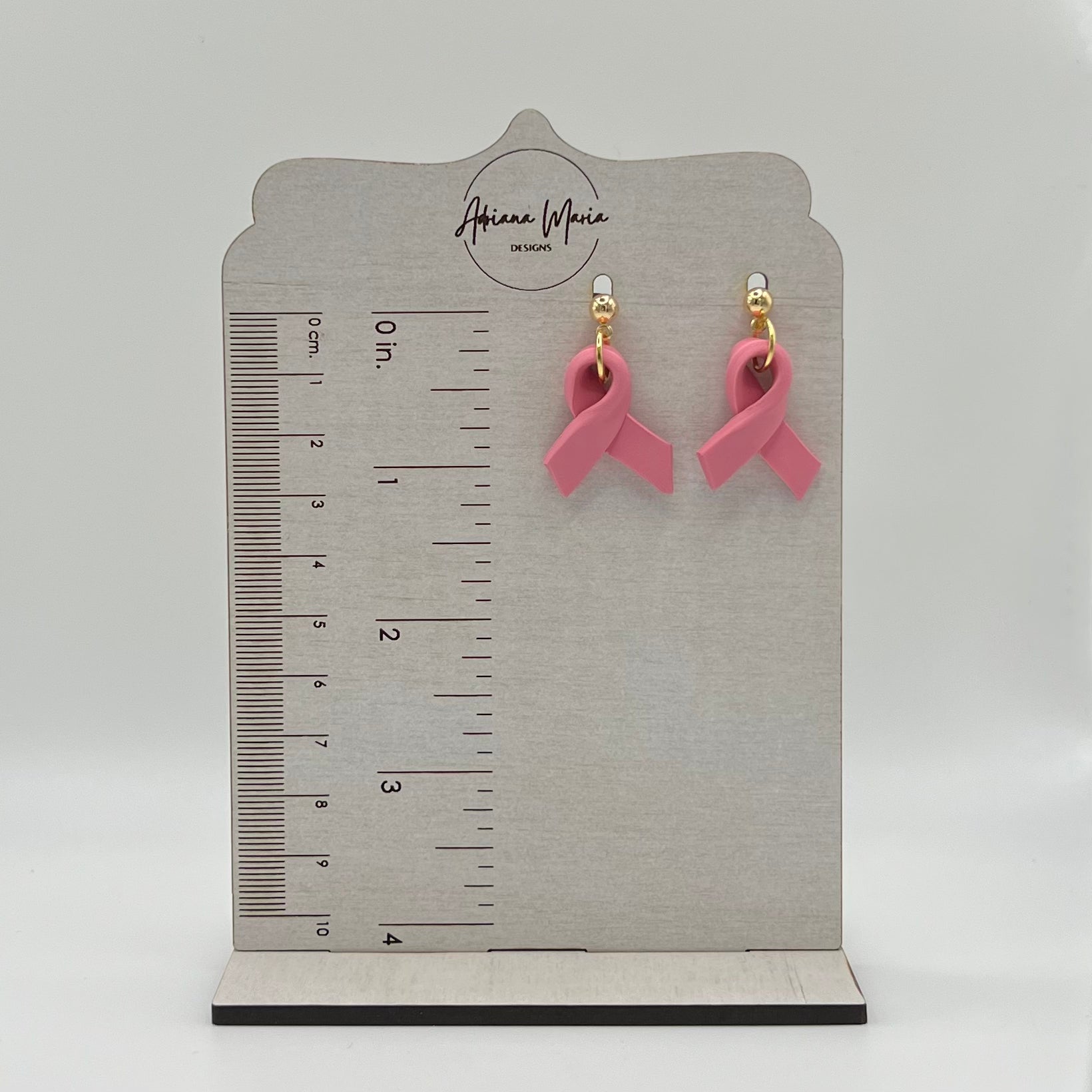 Pink Breast Cancer Awareness Ribbon Clay Dangle Earrings