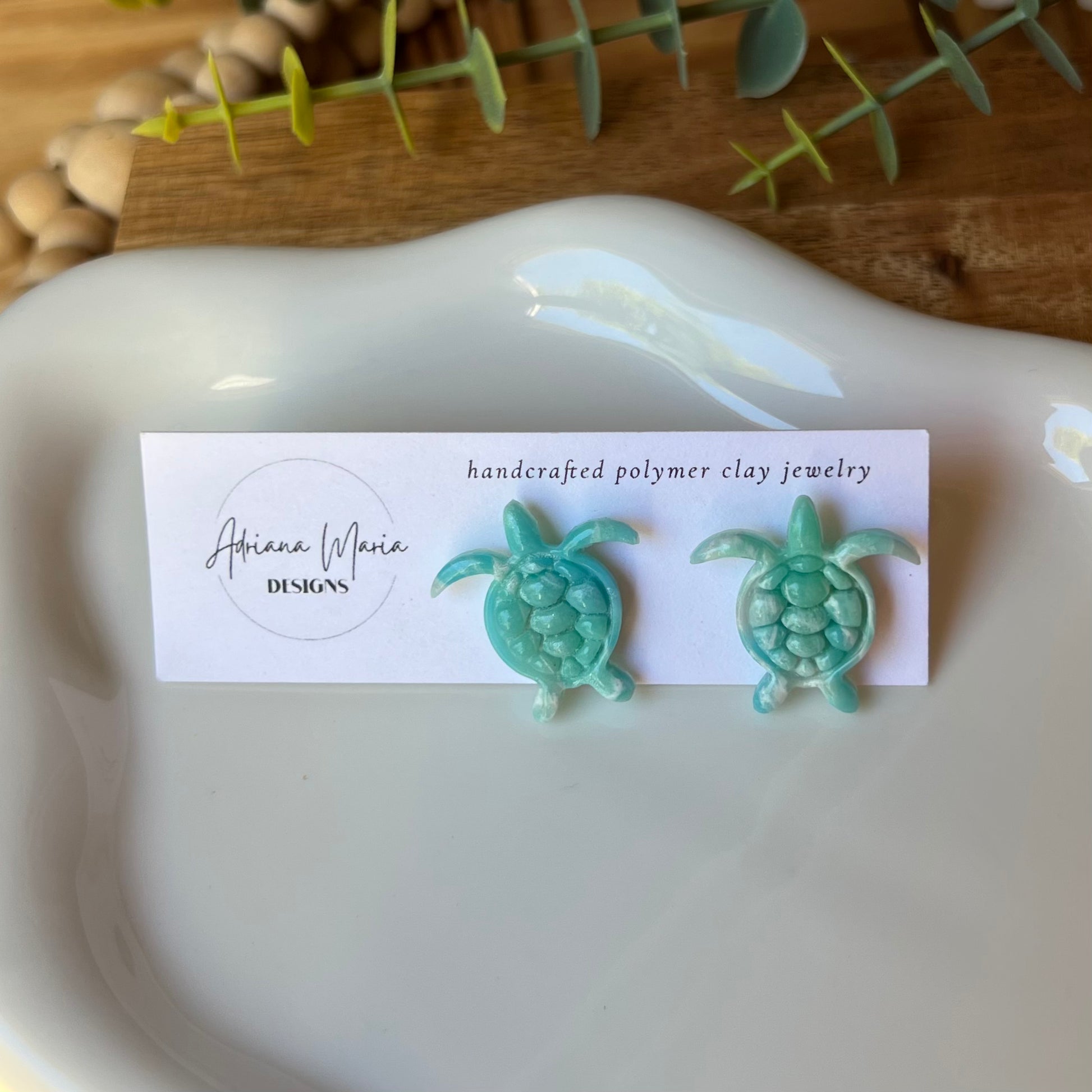 Sea Turtle Ocean Waves Polymer Clay Stud Earrings