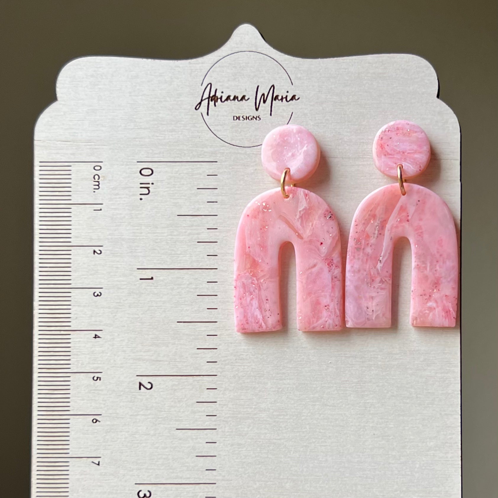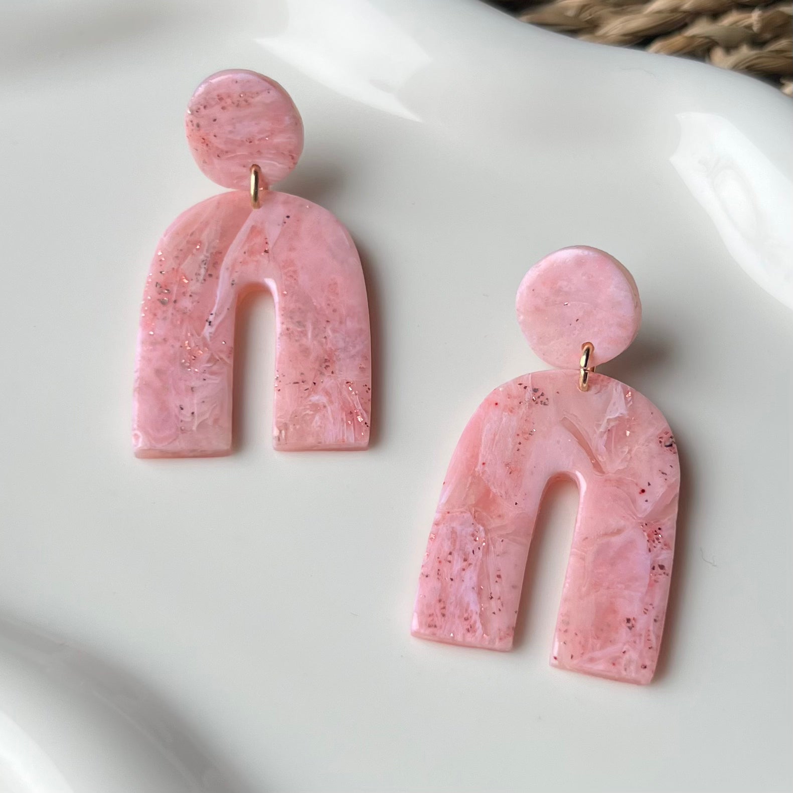 Soft Pink Marbled Organic Arches Polymer Clay Earrings