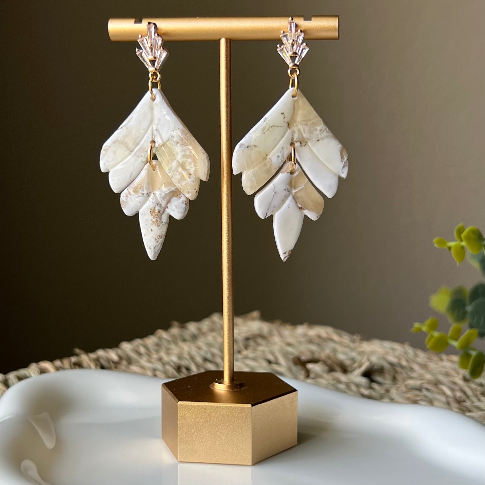 Ivory White Marbled Polymer Clay Earrings