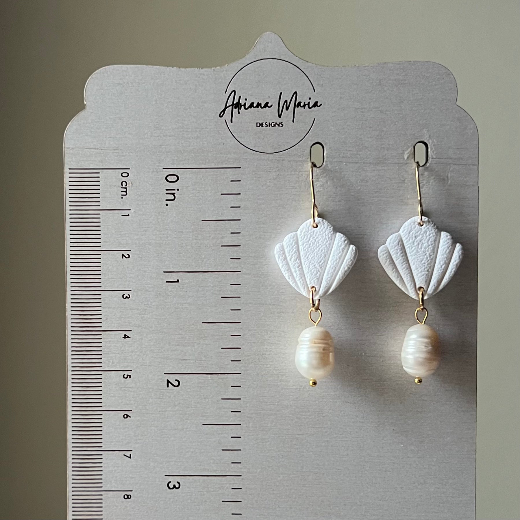 White Shell & Freshwater Pearl Polymer Clay Dangle Earrings